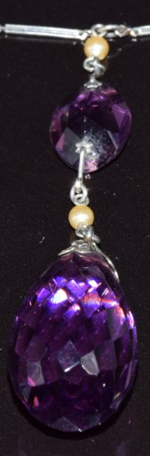 Art Deco platinon necklace set with faux pearls and amethyst