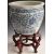 Chinese fish bowl or large jardinière decorated with fish, on hardwood stand, H36 x D44cm, the stand H26cm