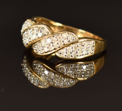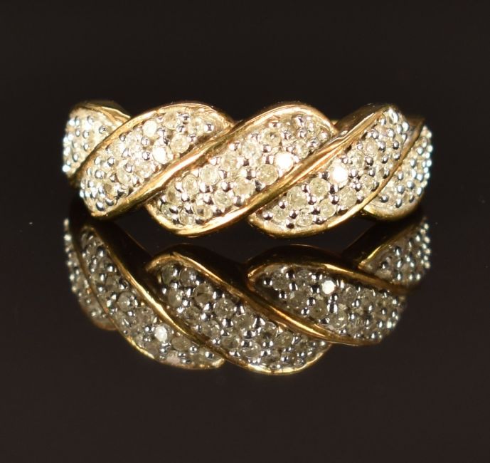 A 9ct gold ring set with diamonds, size J, 2.7g