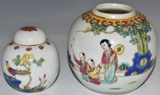 An early 20thC Chinese covered vase, two covered ginger jars etc, tallest 26cm