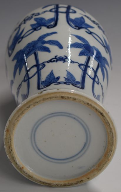 Chinese 19thC blue and white bottle vase of waisted form decorated with flowers, H26cm
