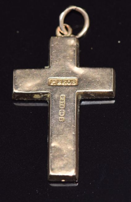 Victorian 9ct gold cross with embossed decoration, Birmingham 1898 maker P.Bros, 4cm, 1.9g