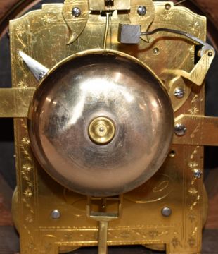 English mahogany double fusée bracket clock with 8inch enamelled Roman dial and movement backplate signed Webster Cornhill London, the movement striking on a bell, within a rounded arched glass sided panelled case with gilt brass furnishings surmounted with a brass carrying handle, H37cm