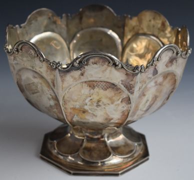 George V hallmarked silver pedestal bowl of octagonal form, London 1910, maker James Dixon & Sons, width 19.5cm, height 16cm, weight 578g