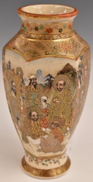 A late 19th/20thC Japanese Satsuma pedestal vase with character marks to base, H15cm