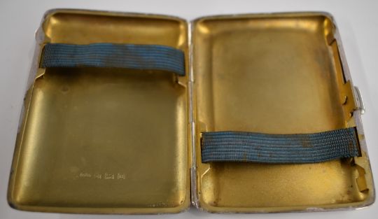 George V hallmarked silver bon bon dish, Birmingham 1919, length 12cm, hallmarked silver cigarette case and a Georgian hallmarked silver table spoon, length 21cm, weight of all three 157g