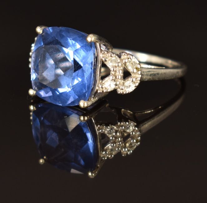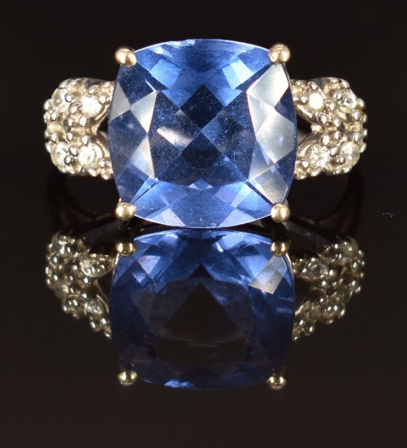 A 9ct gold ring set with topaz and white sapphires, size N, 3.6g