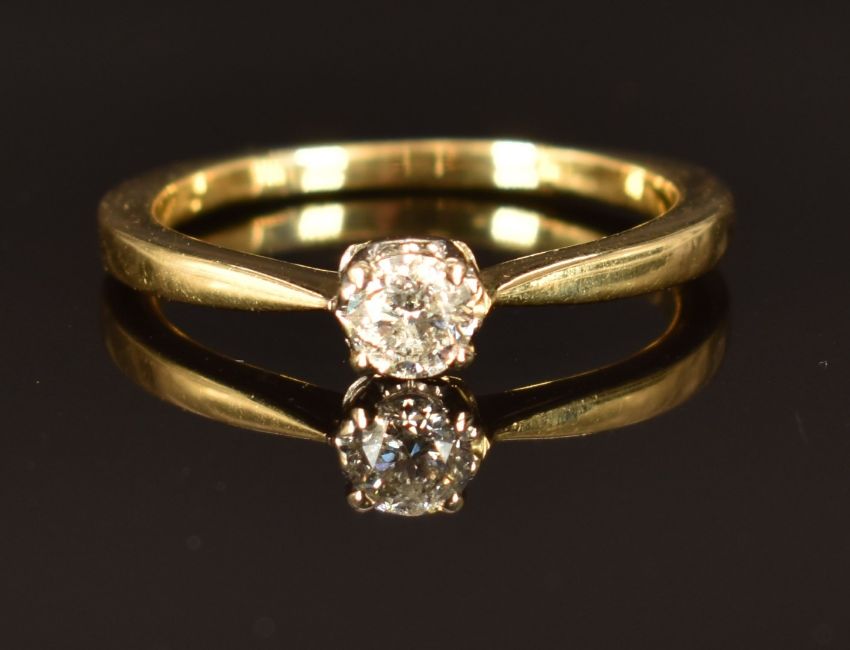 An 18ct gold ring set with a diamond of approximately 0.33ct, 3.6g, size Q
