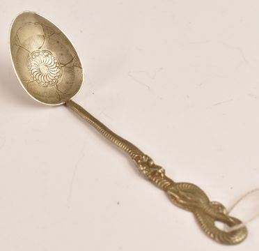 Chinese / Japanese Nagasaki souvenir silver spoon with serpent handle and 84 quality mark, L12cm, weight 14g