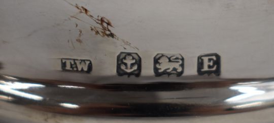 George V hallmarked silver jug, raised on three feet, Birmingham 1929, maker T Wilkinson & Sons, height 10cm, weight 103g, together with a pair of hallmarked silver candlesticks, height 5.5cm