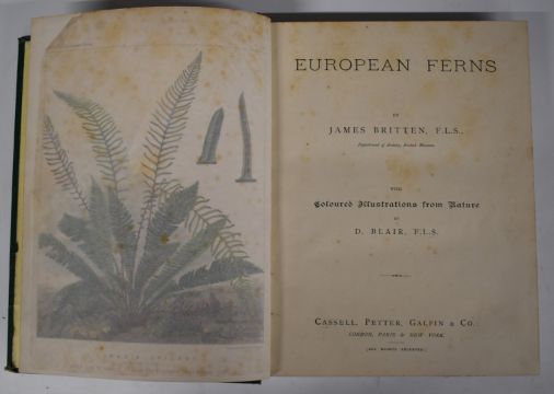 A Natural History of British Grasses by E.J. Lowe with Coloured Illustrations published Groombridge 1858 first edition with chromolithographic plates in leather backed boards, Select Ferns and Lycopods British and Exotic comprising 900 choice species with illustrations by Benjamin Samuel Williams 1868 first edition, European Ferns by James Britten with coloured illustrations from nature by D. Blair (c.1870s) chromolithographic plates bound in gilt decorated cloth, The British Ferns by George Johnson 1867 illustrated, Wayside & Woodland Ferns by Edward Step (5)
