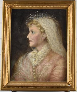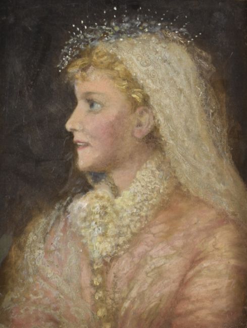 19th or early 20thC oil on canvas portrait of a lady wearing a lace headdress, 44 x 34cm, in ornate gilt frame
