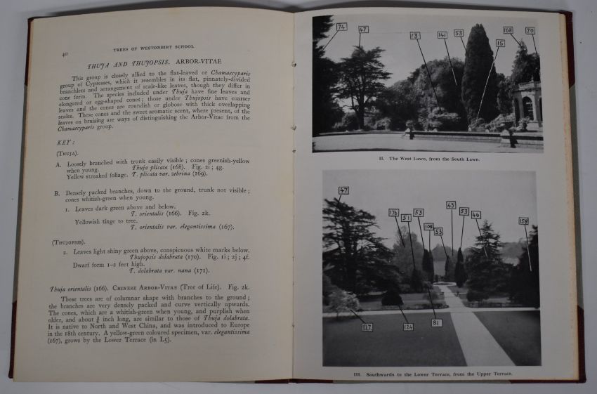 [Local Interest] Catalogue of The Trees & Shrubs At Westonbirt in the Collection of The Late Lieut-Col. Sir George Lindsay Holford Compiled by A. Bruce Jackson, published Oxford 1927 first edition with portraits and 66 plates the whole printed on hand-made paper and bound in gilt lettered cloth and Trees of Westonbirt School by Sylvia Y. Barkley (c.1952) with illustrations and folding plan, bound in half leather (2)