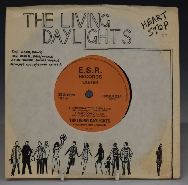 The Living Daylights - Heart Stop EP (ESR 3 S/79/CUS 523), record appears EX, slight staining to cover with small tears to rear centre