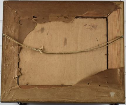 Early 20thC impressionist oil on board coastal landscape with beached boat by a cottage, possibly Devon or Scotland, 25 x 32cm, in gilt frame