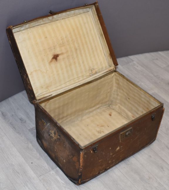 Vintage leather bound travelling case with Southern Railway and other labels, width 55cm