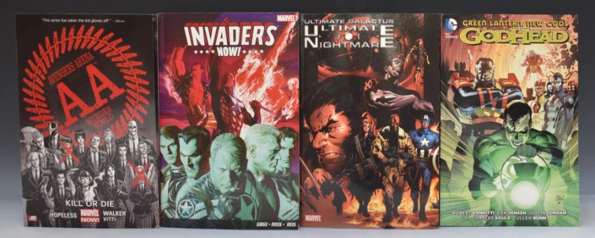 Seventy Marvel and DC graphic novels including Wolverine Origin, Inhumans, Guardians of the Galaxy and Civil War Frontline.