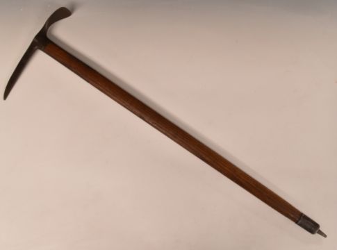 Theodore Howard Somervell, OBE, FRCS (British 1890-1975): Ice axe used by TH Somervell during the 1924 expedition to Mount Everest, with impressed marks Gebr Andenmatten, Saas- Almagel-Schweiz and Marke Mischabel verso, L88cm. This model of axe is understood to have been given to each member of Somervell's team; it is also the same model of axe which Mallory used on his ill fated 1922 Everest expedition, which was later found on Everest and went on to sell at Christie's in April 2014 for $240,000 CAD.