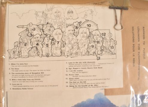 Alan Aldridge designed Beatles Illustrated Lyrics 800 piece puzzle by Philmar, with original box, poster and answers, puzzle size 47 x 85cm