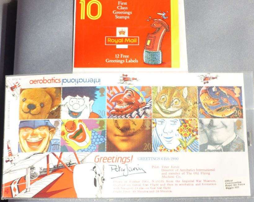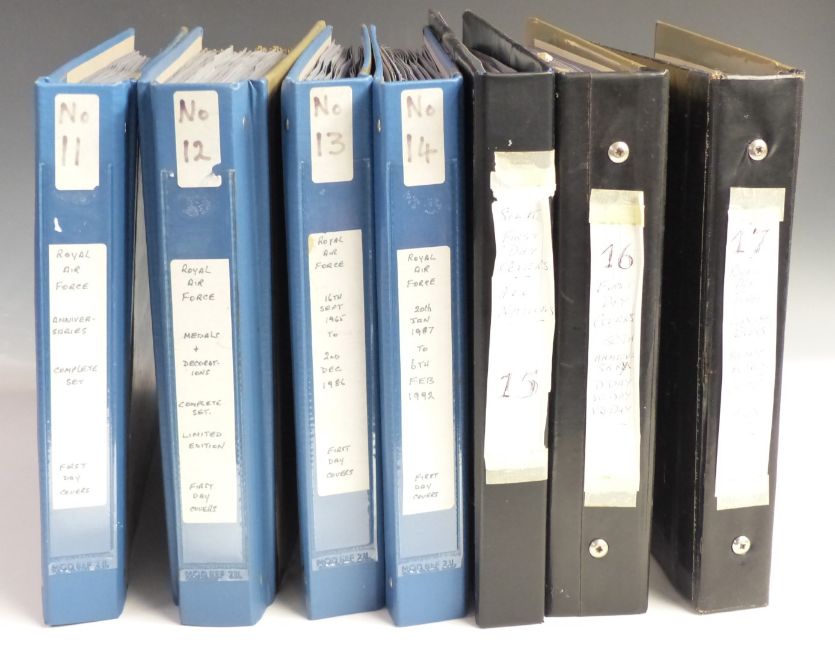 Seven large format cover albums with some mint stamps and coin covers, five of the albums RAF themed, the other two silk first day cover and 50th Anniversary of D-Day, VE Day and VJ Day