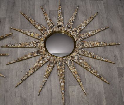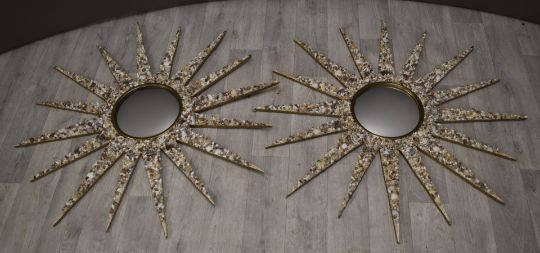 Two shell encrusted star shaped mirrors, diameter 90cm
