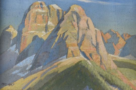 Theodore Howard Somervell, OBE, FRCS (British 1890-1975) oil on canvas mountains and foothills, signed and dated 1967 lower left, 34 x 54cm