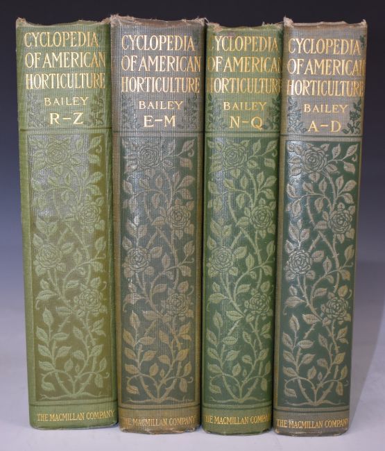 Cyclopedia of American Horticulture by L.H. Bailey assisted by Wilhelm Miller and illustrated with over 2000 original engravings published Macmillan 1900 first edition in 4 volumes, bound in decorated cloth with gilt titles (4)
