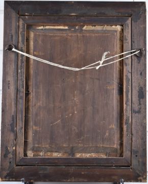 19thC naive watercolour portrait of a child in Scottish dress, holding a sword 30 x 22cm, in period birds eye maple frame