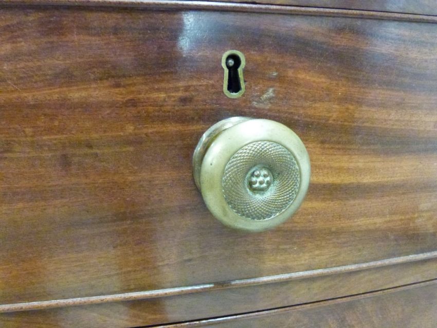 19thC mahogany bow fronted chest of two over three graduated drawers, W106 x D56 x H104cm