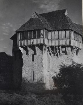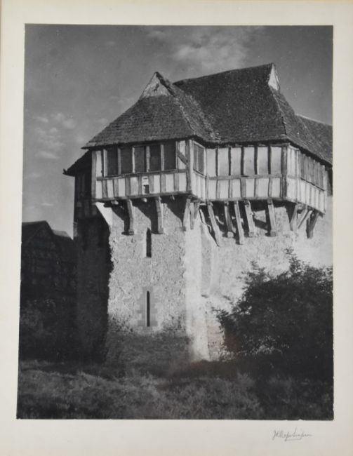 Jim Hope Simpson signed black and white photograph of Stokesay Castle, Shropshire, 37 x 29cm, formerly the property of Theodore Howard Somervell
