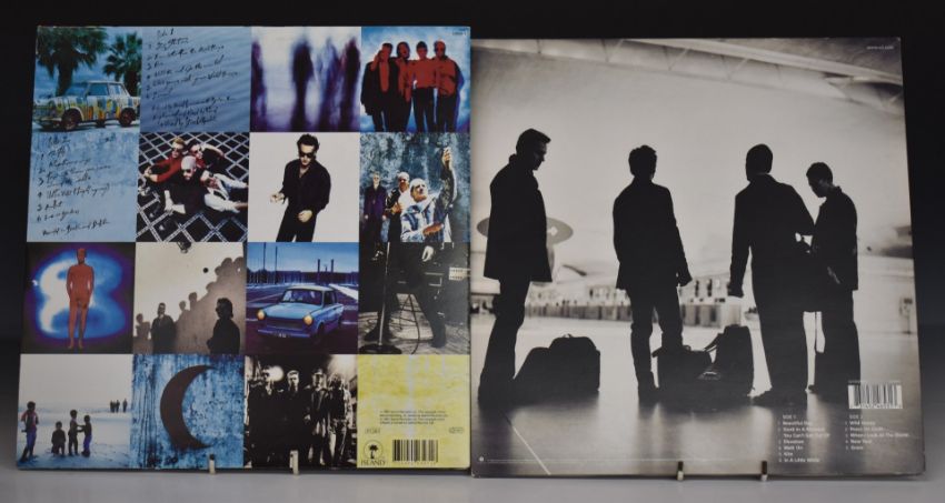 U2 - Achtung Baby, nude Adam with inner and insert, record and stickered cover appear EX, and All That You Can't Leave Behind, record, inner and booklet appear EX with sticker damage to cover