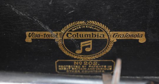 Columbia no 202 c1930 portable wind up gramophone, together with a small quantity of 78rpm records including Vera Lynn, Gracie Fields, Harry Belafonte, Tommy Steele etc, in original box