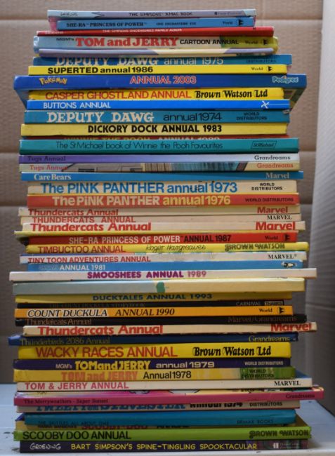 Forty-five cartoon related annuals including Tom and Jerry, Thundercats, Pokemon and The Simpsons.