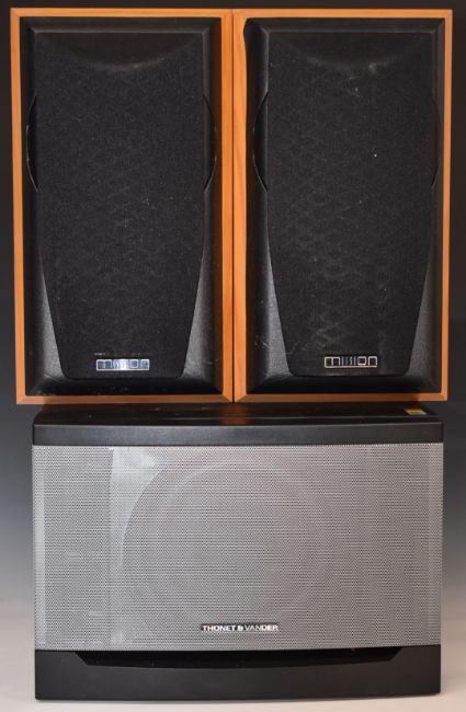A pair of Mission 771 two way stereo speakers and a Thonet & Vander speaker
