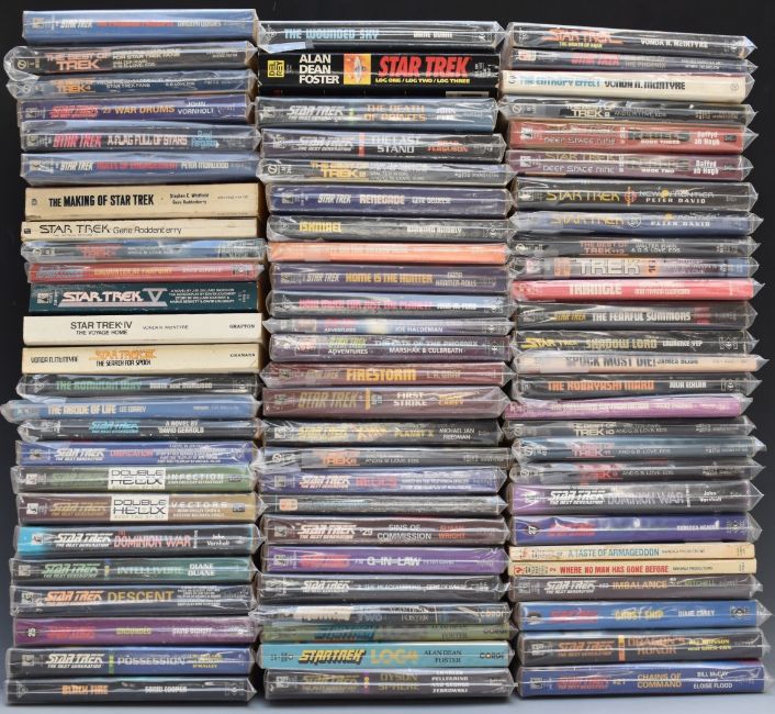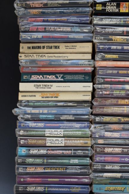 Over 70 Star-Trek franchise paperback novels including the original film novelisation by Gene Roddenberry.