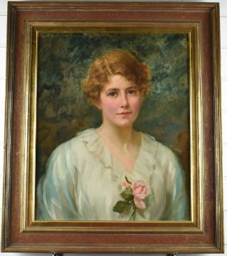 Edwardian oil on canvas portrait of a lady, indistinctly signed/ titled top left, 56 x 46cm, in gilt frame