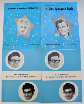 Collection of over twenty 1960s concert programmes for tours and summer seasons featuring performers such as Gerry and The Pacemakers, Ben E King, The Fourmost, Jimmy Tarbuck, The Hollies, Shane Fenton (Alvin Stardust), Mark Wynter, The Kinks, Dave Clark Five, The Mojos, Bobby Vee, The Springfields, Tony Orlando, Clarence 'Frogman' Henry, Billy Fury, Peter Jay and the Jaywalkers, Joe Brown, Gene Vincent, Sounds Incorporated, Billy J Kramer, The Dakotas, Tommy Roe, Heinz, The Dennisons, Johnny Kidd, The Pirates, Joe Brown, Manfred Mann, Freddie and the Dreamers, Wayne Fontana and the Mindbenders, Roy Orbison, Tony Sheridan, Frank Ifield, Susan Maughan, Bruce Forsyth, Harry Secombe, Cliff Richard (programme including photo insert), The Shadows, Kathy Kirby, Helen Shapiro (programme including photo insert and bill amendment page), Dave Allen, Marty Wilde, The Wildcats, Dickie Pride, The Tornados etc