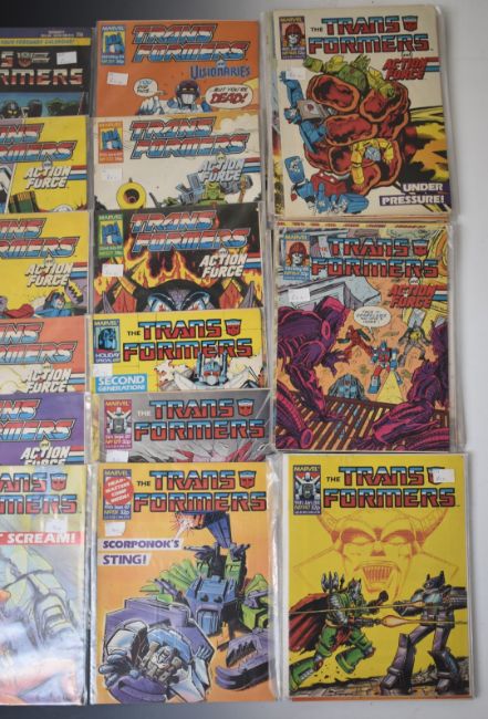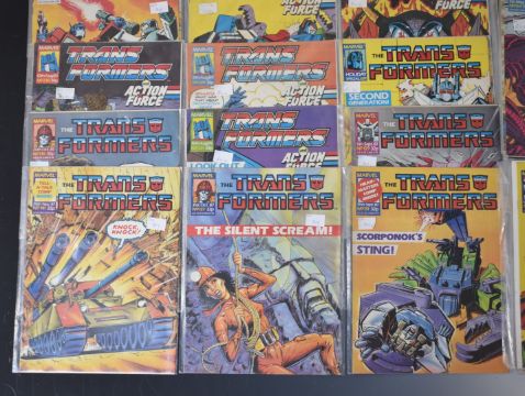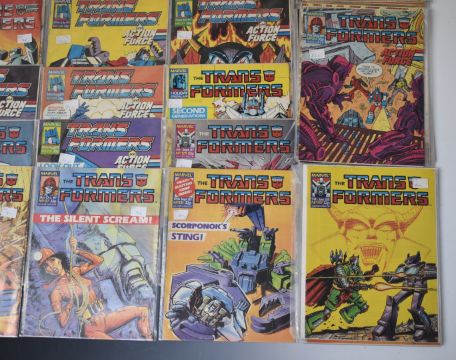 Forty-seven issues of The Transformers Comic by Marvel Publications, including issue 1 and five special editions.