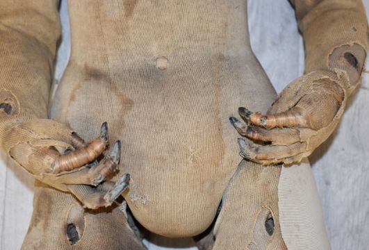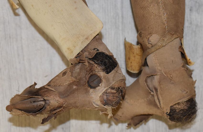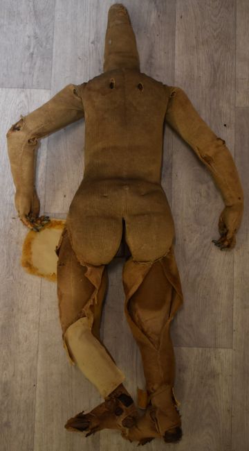 Victorian child lay figure / silent partner made for Robertson Art Shop, Longacre, London, with hair wrapped bronze fingers and articulated joints and stuffed with horse hair, oval Robertson stamp to neck, approximate height 88cm