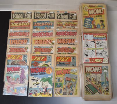 Over two hundred and fifty children's humour comics from 1970's and 80's, titles include Cheeky, Tornado, Wow! and Jackpot, some low numbered issues.