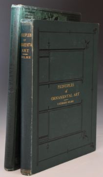 F. Edward Hulme Plants Their Natural Growth and Ornamental Treatment published Marcus Ward 1874 first edition with 44 chromolithographic plates, bound in decorated gilt cloth (marking to cover), Principle of Ornamental Art by F. Edward Hulme published Cassell, Petter & Galpin (c.1870s) with 32 engraved plates bound in gilt lettered cloth with black stamped design (2)