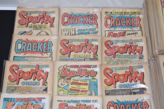 Over two hundred and twenty British humour comics, titles include Sparky, Spike, Cracker and Hoot, some first and early numbered issues.