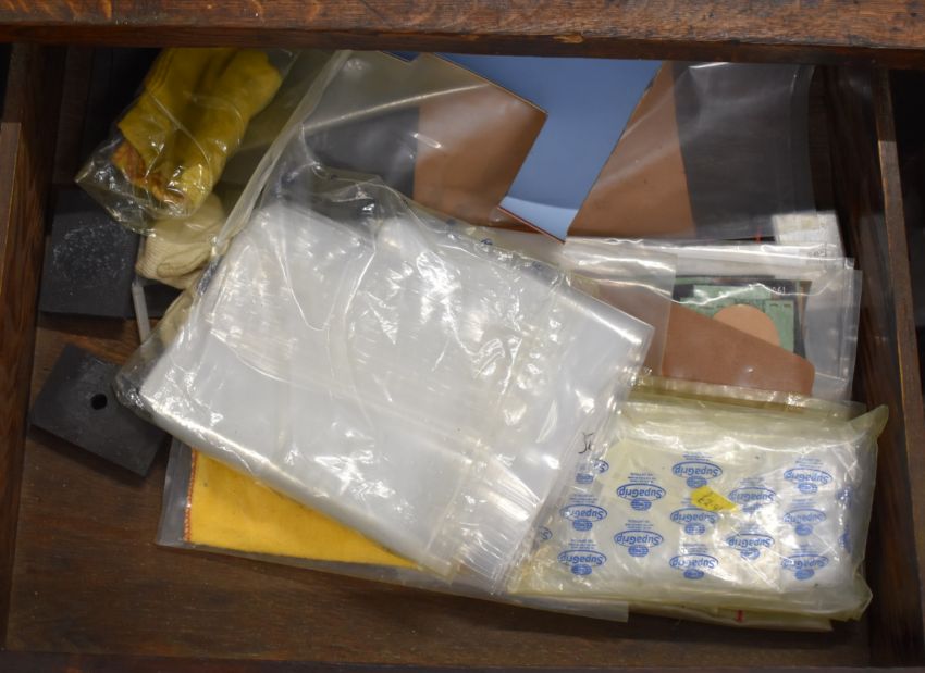 Oak two drawer table or workbench, W122 x D76 x H76cm