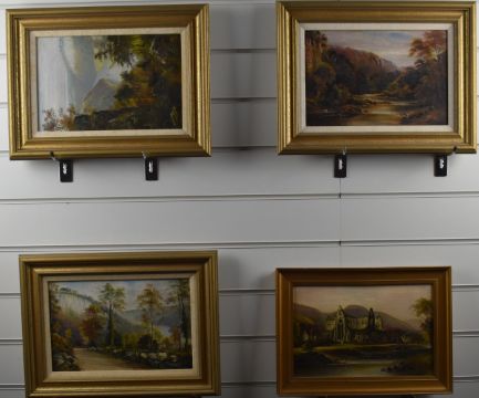 George Willis Pryce RSA, RWS (1866-1949) four River Wye interest oil paintings including Symonds Yat, largest 19 x 29.5cm