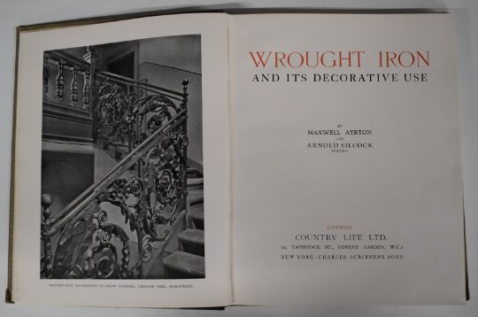 Wrought Iron and Its Decorative Use by Maxwell Ayrton & Arnold Silcock published Country Life 1929 first edition in cloth backed boards with gilt titles (inscribed by author), English Leadwork its Art & History by Lawrence Weaver published Batsford 1909 first edition, Ornamental Timber Gables by A. Pugin Architect 1915 limited edition, loose as issued in printed boards, Plastering Plain & Decorative with 380 illustrations by William Millar 1927 Batsford in dust-wrapper, Recent English Domestic Architecture volumes 1910 & 1911 (Special issues of The Architectural Review) in printed cloth cover plus another (7)