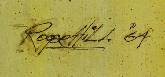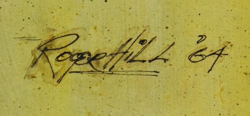 Roger Hill (Canadian) oil on board tree and bullrushes, signed and dated 64 lower left, 76 x 61cm
