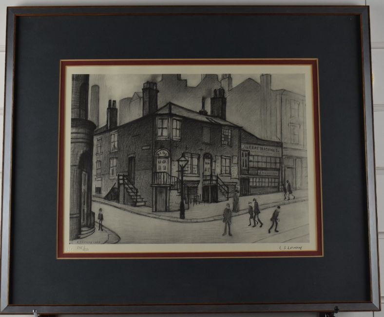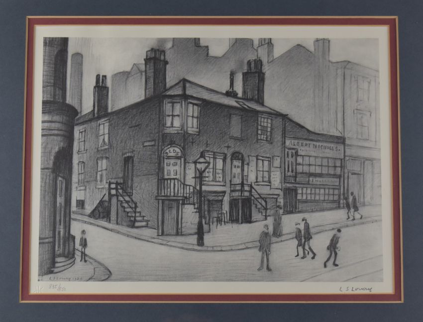 After Laurence Stephen Lowry RBA RA (1887-1976) Great Ancoats Street, signed limited edition (835/850) lithograph, with blind stamp lower left, limited edition print from an original pencil drawing, image size 26.5cm x 36.5cm, in brushed metal and wood frame