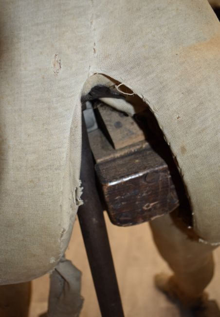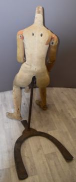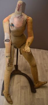 Victorian female lay figure / silent partner, possibly German, with wooden fingers and articulated joints, on original metal stand, approximate height 144cm