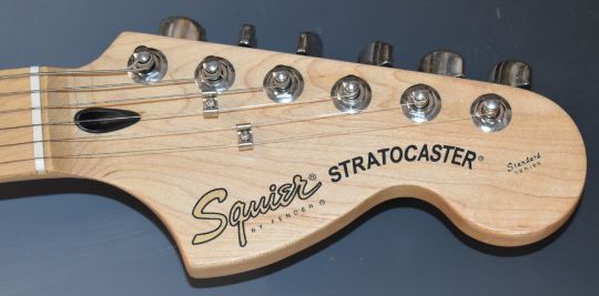 Squire Standard Series Stratocaster electric guitar by Fender in antiqued sunburst finish, in a soft carry case
