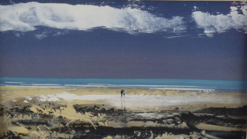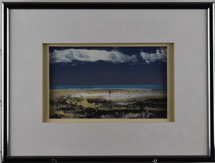 John Cleal (Welsh 1929-2007) oil 'Beach of Their Own', signed lower left, 14 x 22cm, in modern frame, titled verso